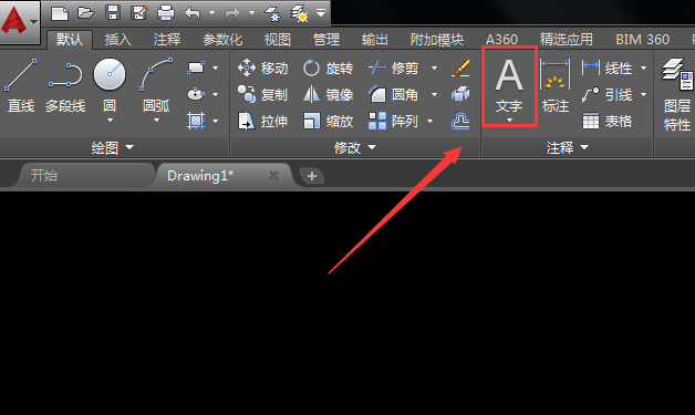 2、选择圆形命令之后我们在绘图区里绘制出一个圆形,然后再在菜单里找到文字选项,如图所示: