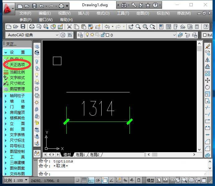 3、另外一种方式,则是在天正的主菜单“设置”下拉菜单中,点击“天正选项”菜单栏。