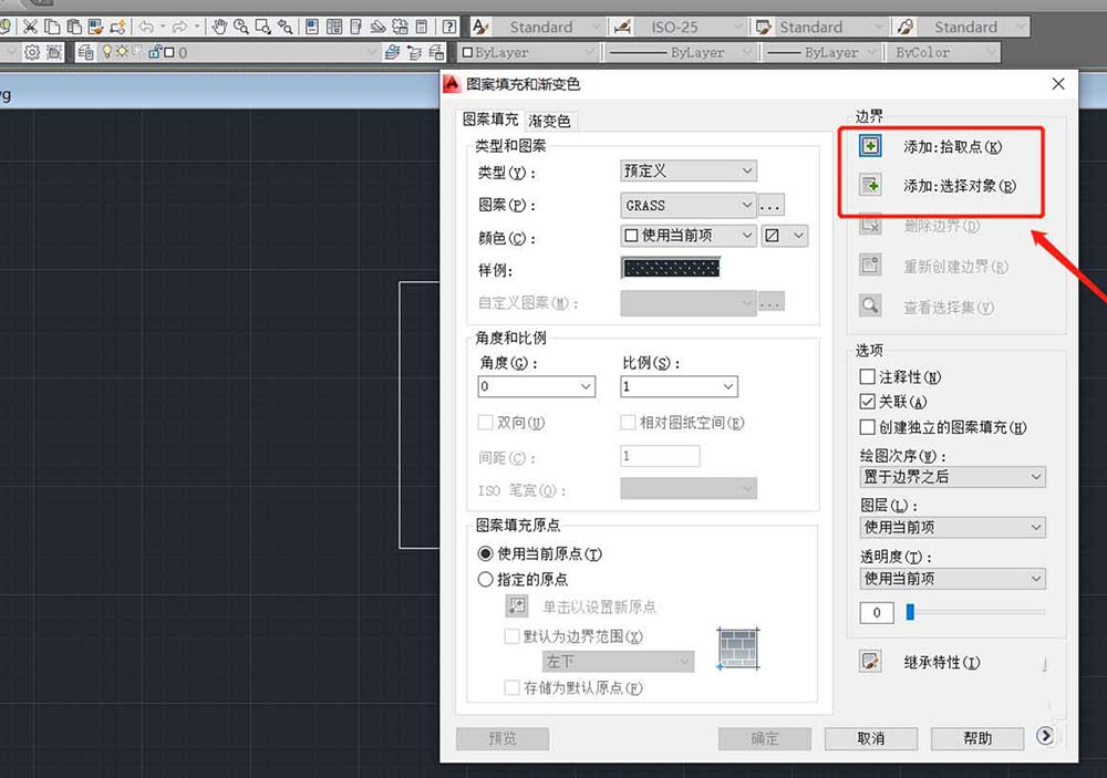 6、点击添加拾取点或者添加选择对象,选中要草坪范围。
