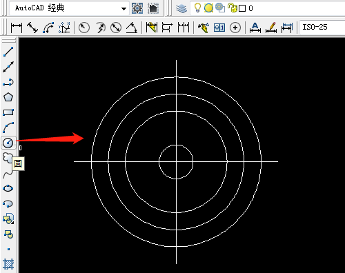 3、用圆工具,以直线为圆中心按尺寸半径绘制4个圆。