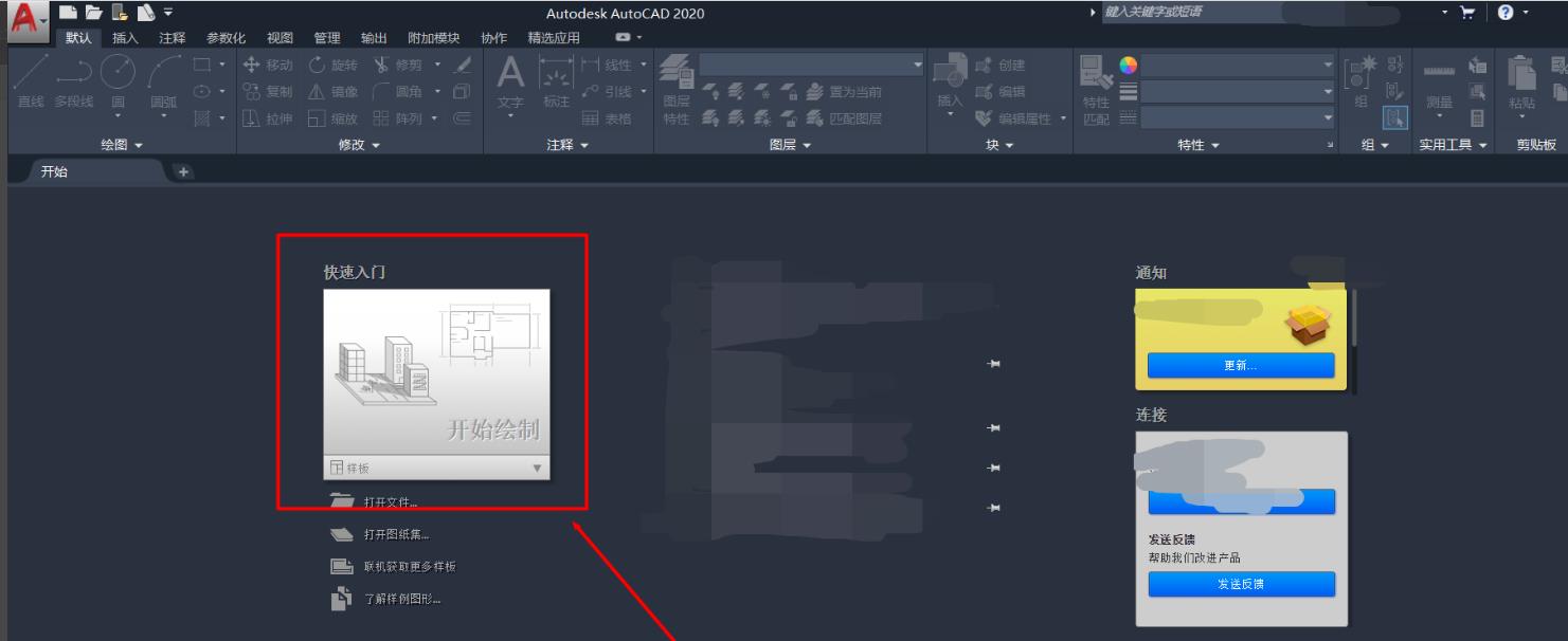 2、进入CAD2020编辑界面,选择“开始绘制”