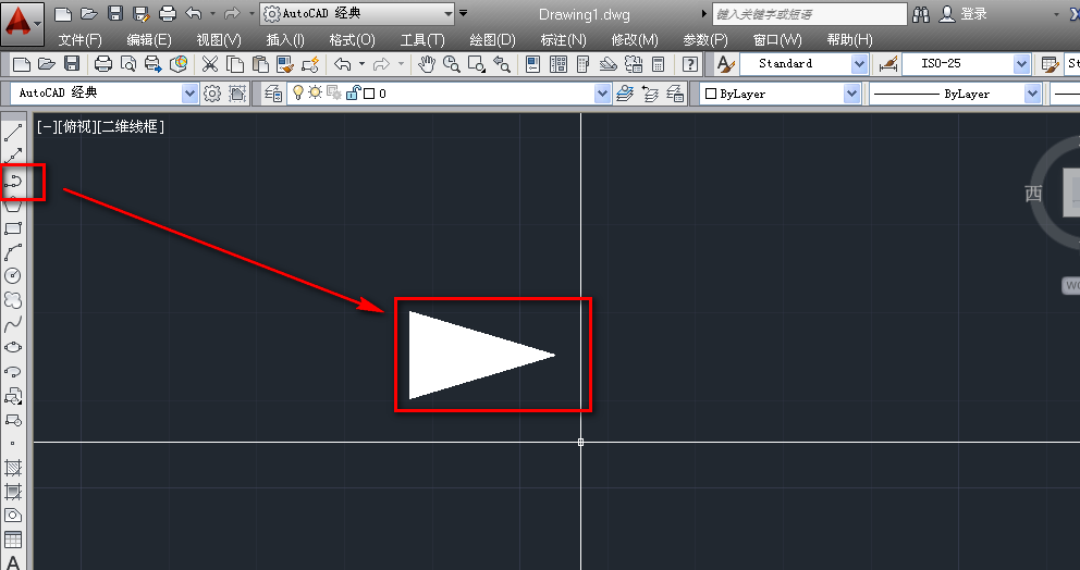 1、打开cad,使用多段线工具绘制一个起点和终点不同宽的线段,如下图。