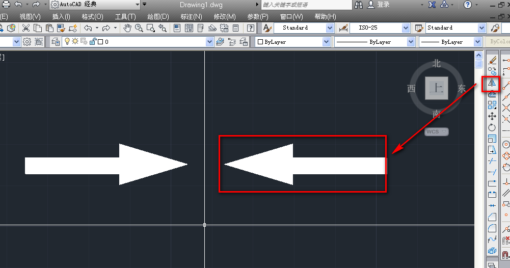 3、使用镜像工具,将两段线段整体镜像,如下图。