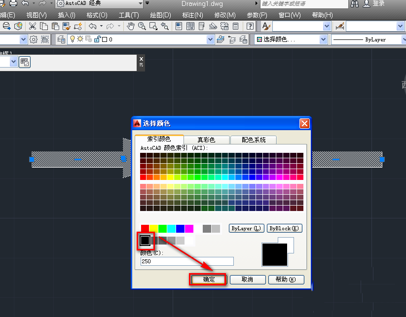6、选择要使用的线型的颜色,点击确定,如下图。