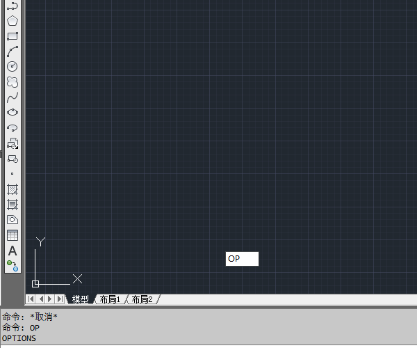 1、首先,打开cad软件,输入快捷键命令”OP“。
