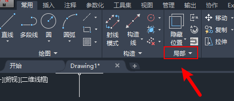 1、进入“常用”选项卡,找到“局部”面板,点击下拉按钮。