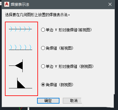 3、随后在弹出的焊接表示法对话框中选择需要绘制的焊缝样式。