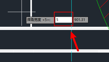 4、以角焊缝俯视图为例,选中样式后确认,指定焊角宽度。