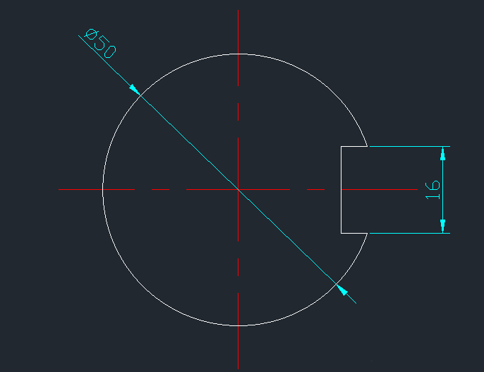 3、用直线命令在圆的右边绘制出如图所示的图形,高16.