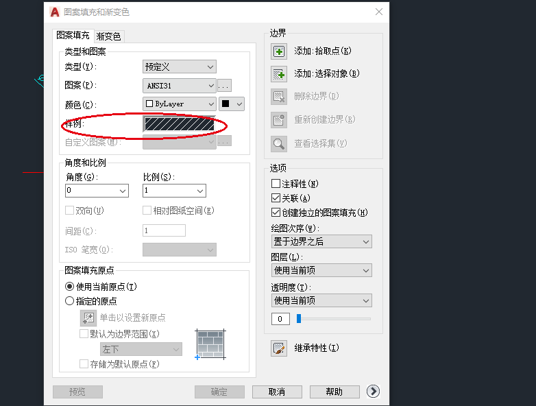 5、输入填充命令BH,按空格键,出现一个填充的窗口,选择如图所示的填充样式。