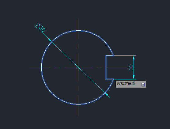 6、添加选择对象,选择圆以及修剪的直线部分,如图所示。