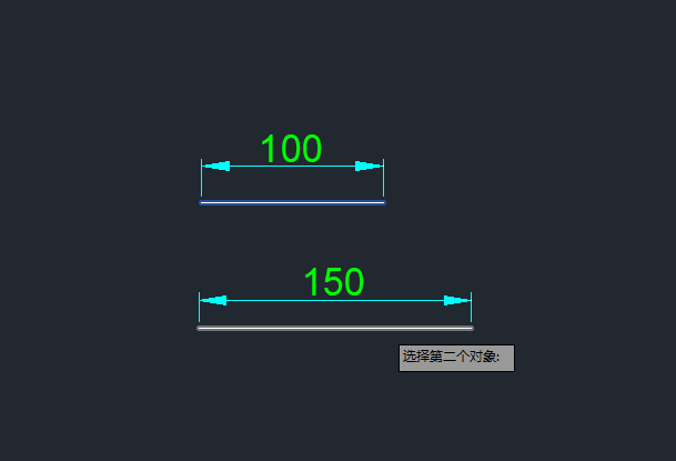 5、点长度50的直线后,提示选择第二个对象,这时候选择长度100的直线。
