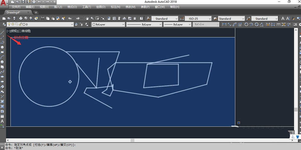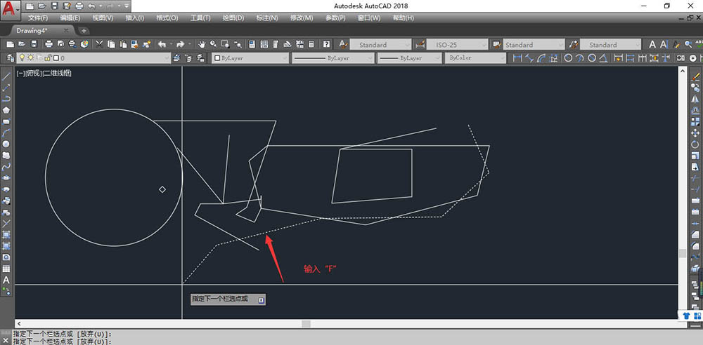 在执行某个命令时,让你选择对象时输入“F”便会出现虚线,选择相应目标后“回车”即可选中对象。