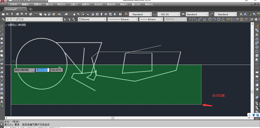 (2))由右往左的选择-->“选中部分即可选中对象”-->"绿色框"。