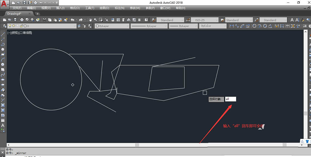 (2)当执行某个命令时,让你选择对象时输入“all”回车即可全选。