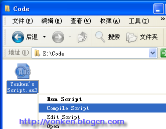 3. 在出现的右键菜单上点击“Compile Script”,则脚本文件即被编译并在同一目录下生成一个同名文件(当然,扩展名变成.exe)。