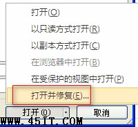 A:文件——打开,选择相应文档,然后按下面提示框,选择“打开并修复”。