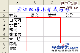 第1步:选择成绩录入区域。