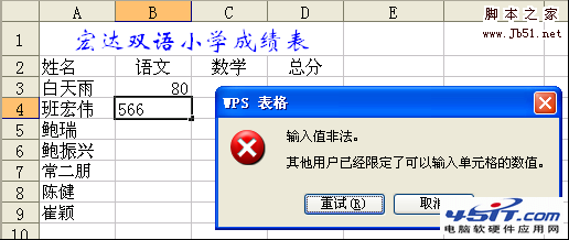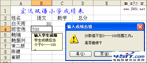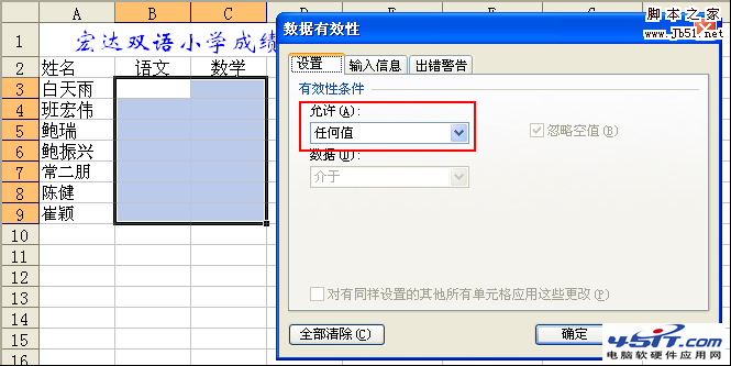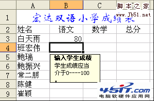 假设试卷的满分100分,因此学生的成绩应当介于0----100分之间的。我们可以通过以下几步使我们录入成绩时保证是0----100分之间,其它的数据输入不能输入。