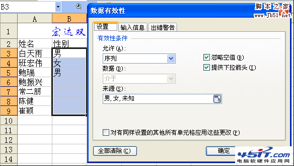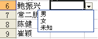2. 设置性别只能输入“男,女,未知”