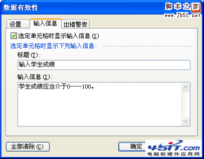在数据有效性对话框中,点击 输入信息 页,打开输入信息界面。如图6-4-6所示。