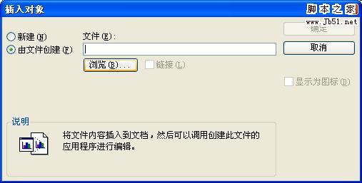 文字中再打开一个空白文档,待编辑好试卷的其它试题后,将光标定位到作文标题下,在菜单栏中单击“插入——对象”命令,然后在打开的“插入对象”对话框中选择“由文件创建”,再单击“浏览”按钮(如图