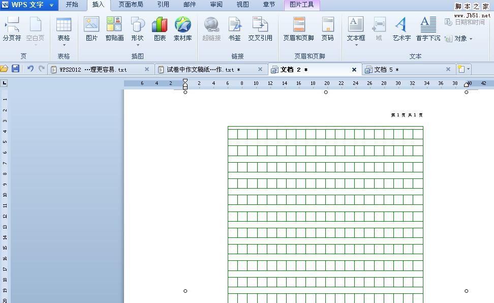 文字中一般插入的稿纸默认的都以整页的插入的,那我们如何在文档中某一位置插入特定的“一块”稿纸呢?首先是打开