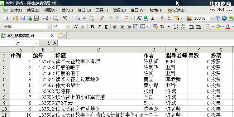 -3步骤之3”对话框中单击完成。至此,学生参赛信息就导入到电子表格中了。电子表格截图: