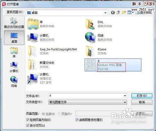点击工具栏上的“打开”(也可以依次点击菜单栏上的“文件”→“打开PDF文件或图像”),在弹出的对话框中选择你要转换的图片(我们选择4.PNG)文件