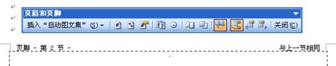 选择菜单“视图—页眉与页脚”,光标自动定位在第3页的页眉,并弹出菜单,选择页脚,此时页脚处右上角有显示“与上一节相同”。