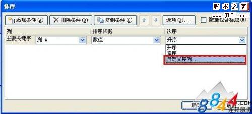 3、选择“自定义序列”,这里面我们就可以选择我们需要排序的类型了,然后确定即可。