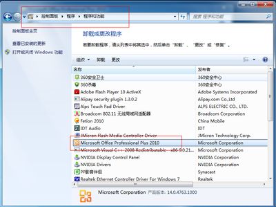 在控制面板中打开程序和功能,选择Office 2010右键点击更改,再打开Office 2010安装程序-选择"添加或删除功能"