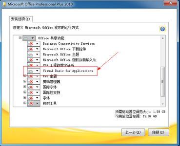 这主要是由于安装的时候没有安装"office 共享功能"中的"visual Basic for Applications"组件的原因