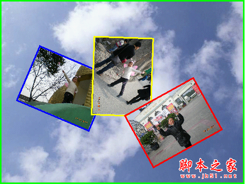 运用缩放、旋转手段将相片随意摆放,调整版式以便于组合,得到如下效果。