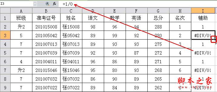 我们需要设置辅助列。在I1单元格输入“辅助列”,I2单元格输入“1”,I3单元格输入“=1/0”。然后选中I2:I3单元格,按下“Ctrl”键,双击该单元格区域的填充句柄,使向下填充公式至最后一行。如图3所示。