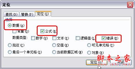 选中“数据”单选项、“公式”和“错误”复选项,清除其它单选项和复选项的选中状态,点击“定位”按钮,然后关闭此对话框。此时,所有错误单元格均呈选中状态。点击菜单命令“插入→行”,可以得到如图5所示效果。