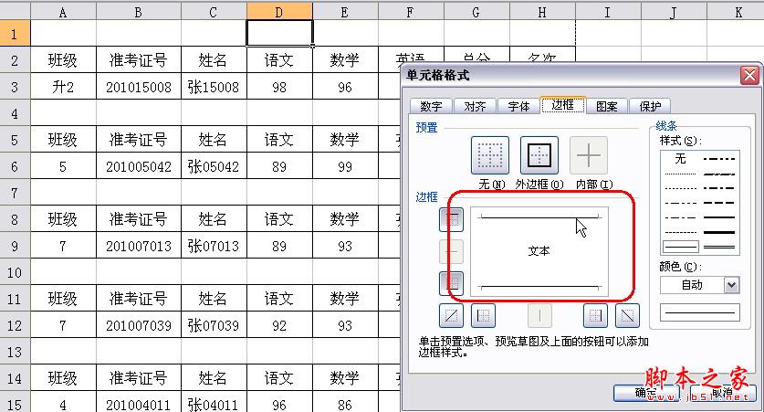 此时的问题在于空行单元格仍有边框,不太美观。我们可以再用定位“空值”的办法,选中全部空行,然后点击菜单命令“格式→单元格格式”,将单元格边框只保留上下两条边线就可以了,如图8所示。