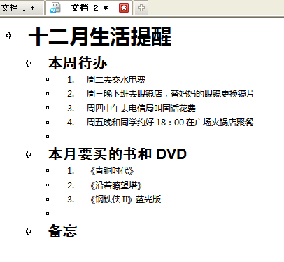 比如,我拟了一份十二月的待办事项和备忘,如下图: