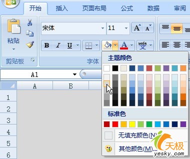 具体过程是:先选中图示区域A1:H12单元格,然后点击功能区“开始”选项卡中“字体”功能组中“填充颜色”按钮右侧的小三角形,然后在“主题颜色”列表中选择“白色,背景1,深色15%”,如图3所示,将所选单元格填充成浅灰色。