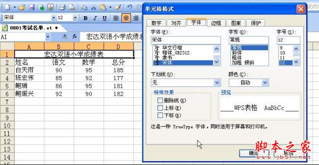 如图3-2-1所示,对于第1行,一般情况下我们希望A1到D1变成1个单元格,另一方面,希望它居中显示,用句属语叫做合并单元格。选中A1:D1区域,点击菜单 格式--->单元格,从弹出的单元格格式对话框中,选择 对齐 页,选中合并单元格前面,然后按确定,如图3-2-2。