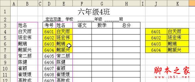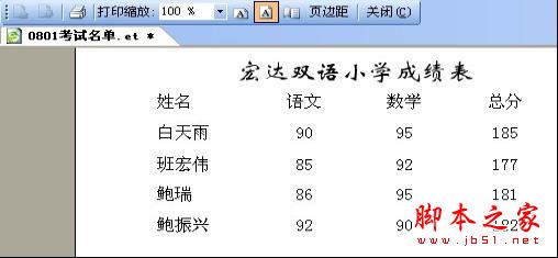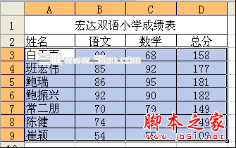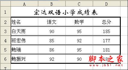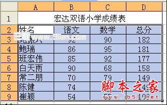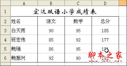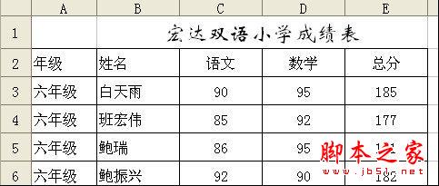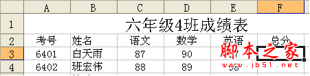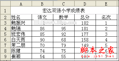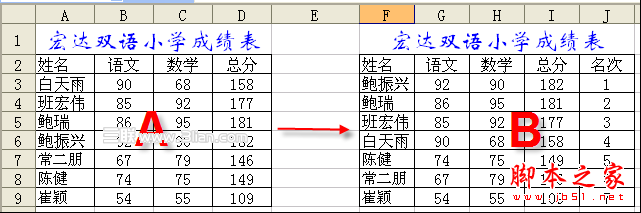 要求:如图6-1-1所示,我们将A表中的成绩表按总分从高到低进行排序,然后加入名次,制作成B表的模样。
