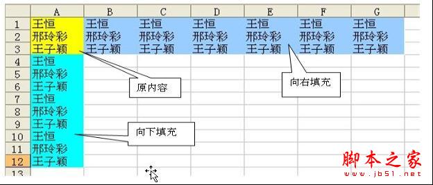 注:图中只在C列中输入了公式(或函数),右边的那几列是向右拖动自动生成的。