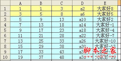 选中后,即可对选中的内容进行复制与粘贴了,粘贴时,注意被粘贴区域,被粘贴区域要与选择区域相同,如果不愿意再选择被粘贴区域,可以点击目标区的任一单元格,然后按粘贴按钮即可。对于整行或整列这种情况,一定要点击第1个单元格,否则不能粘贴,具体过程略。图2-2-8是一个进行了复制与粘贴操作的例子。