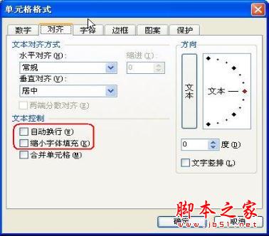 选中要操作内容区域,即A1:D3,然后点击菜单 格式--->单元格,打开单元格格式对话框,单元格格式对话框有6页选项卡,选择其中的“对齐”选项卡,界面如图3-1-2所示。