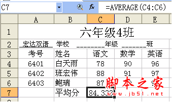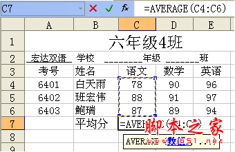 注:=average(c4:c6) 相当于=average(c4,c5,c6) 。
