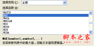 先来看一下该函数的介绍,打开插入函数对话框,从选择类别中选择全部 ,然后从下面的函数表中找到 max 函数。那么下面显示出该函数的介绍。见图5-3-5所示。