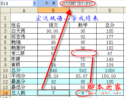 我们可以这样写公式 : =COUNTIF(B3:B9,">=60")-
