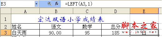 在上面的例子中,text是A3,num_chars是3,也就是从A3单元格中取出左边1个字符来。A3的值是“白天雨”,左边1个字符是“白”,那么E3的值就是“白”了。