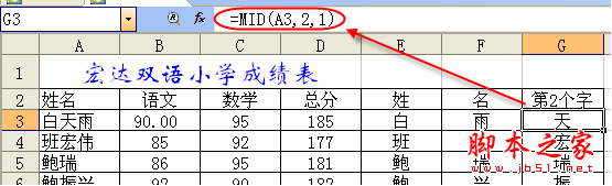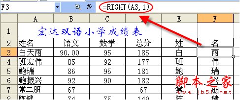 记得中考时,学生的排序是按名称的最后一个字来排的,此时用right( )求出了最后一个字,然后我们就可以按它来进行排序了。(排序在后面的章节中介绍。)