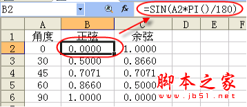 这是求指定弧度的正弦函数与余弦函数。如果想计算角度的正弦或余弦,要先转换成弧度值。见下图所示。